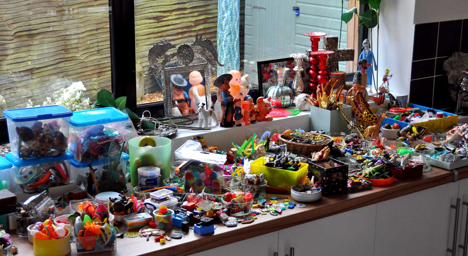 Jane and I have spent many happy hours over the years scouring through the bottom of “Everything 20p” boxes at car boot fairs, snapping up grimy job-lot tins at auctions, scooping lost little objects off the pavement – all for our own delight.