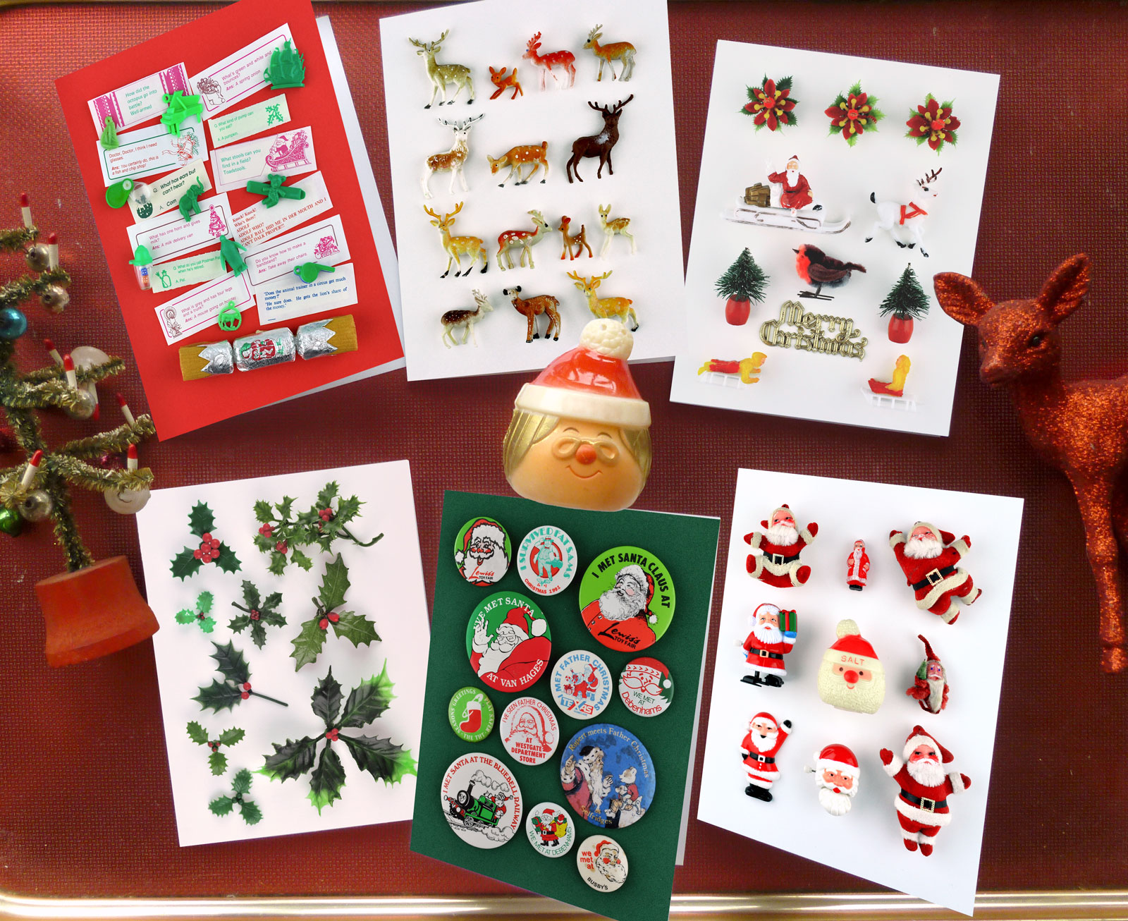 … (cough, cough) speaking of which – due to the suggestions from many followers of our Instagram feed that we should produce a book or cards based on our collections – we’ve decided to create a set of six cards for this Christmas featuring some of the tiny Yuletide treasures from our ever-growing archive.