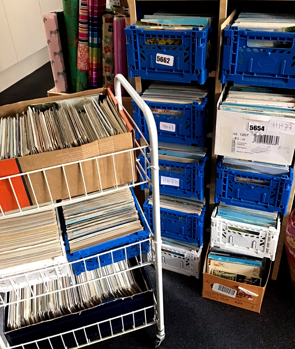 But then there’s the older postcards I’ve bought in job lots at auctions which I haven’t entirely got to grips with yet: hundreds of cards (as you can see above), mostly from the 1950s to the 1980s, of holiday destinations, largely in the UK. From these I’ve started to pick out the treasures, cards which for one reason or another, have a special appeal. I keep these in albums, which I like to rearrange every so often, just like my twelve-year-old self.