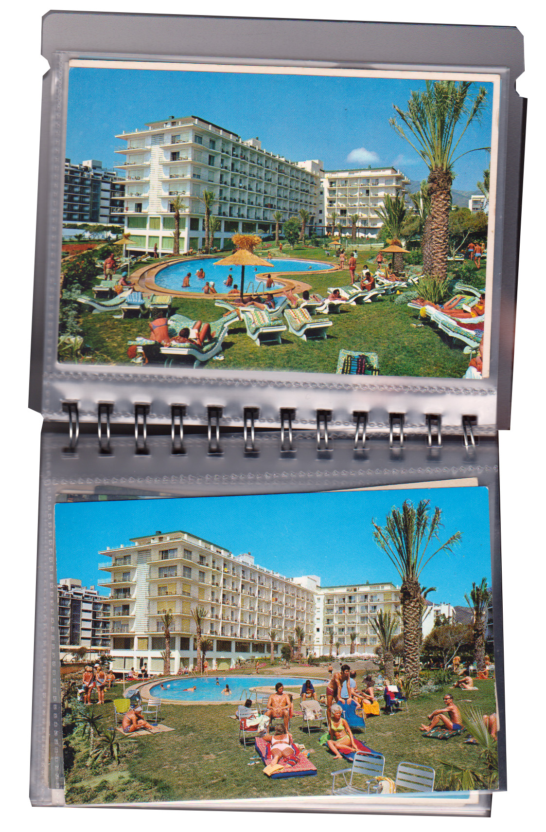 In this album, above, I keep cards that I use to make digital prints, some already realised and some waiting to be done. I’m fascinated by different postcards of the same place and I like to overlay them to get the effect of changes over time. I’ve done a post about my overlay prints recently, if you’re interested.